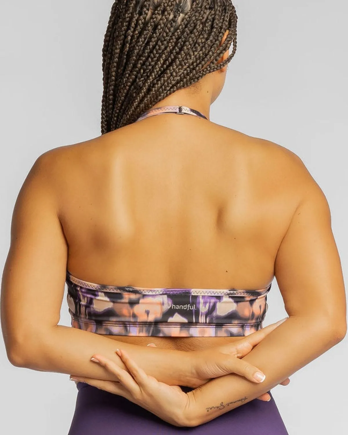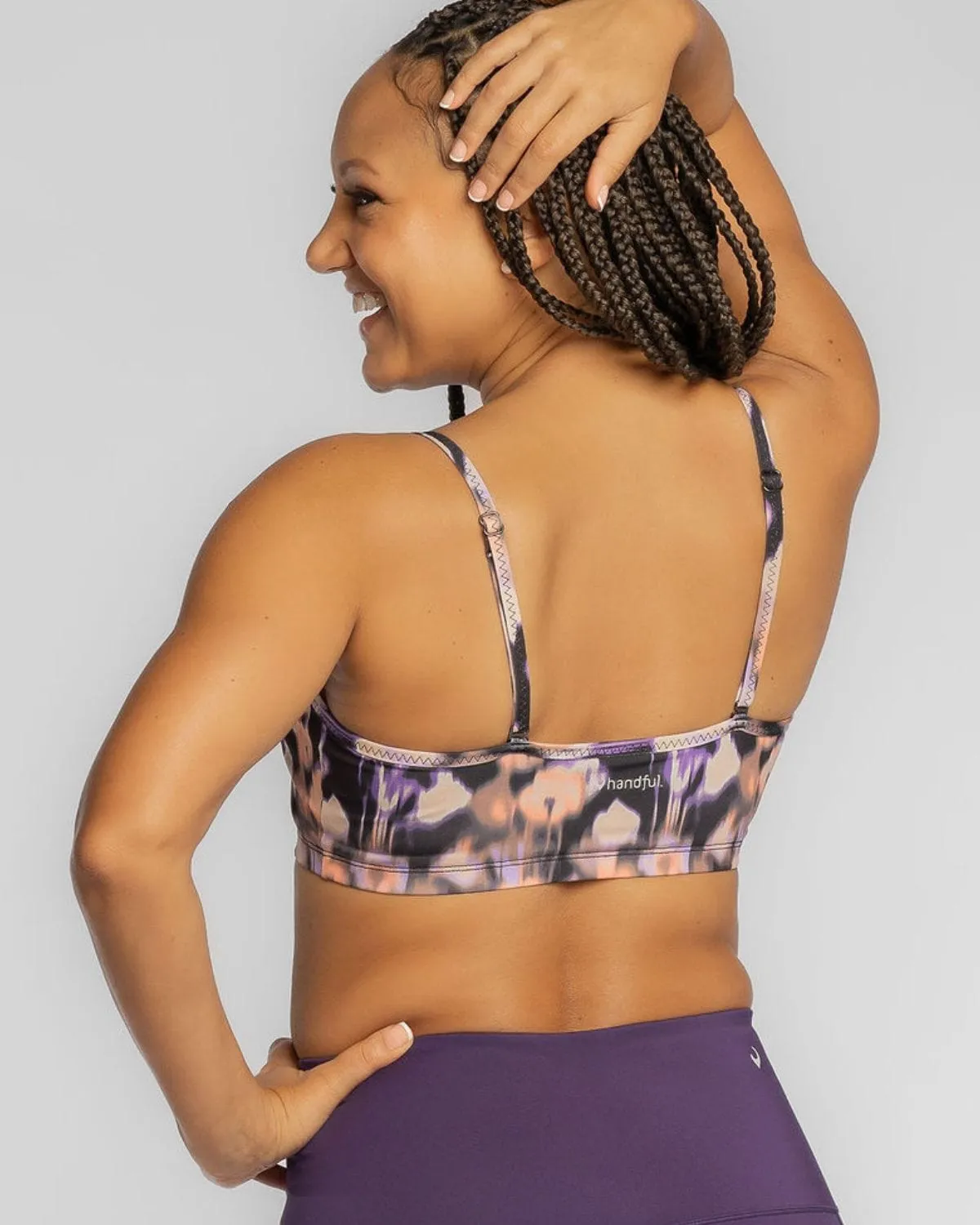 The Handful Adjustable Bra is a washable soft, versatile, wear-everywhere chafe-free moisture-wicking bra featuring pockets, removable pads, and straps that can be worn in three ways. It is the original do-it-all, all-day-long adjustable bra!